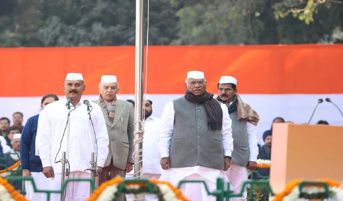 नयी दिल्ली। कांग्रेस ने बुधवार को अपना 138वां स्थापना दिवस मनाया और इस मौके पर पार्टी अध्यक्ष मल्लिकार्जुन खरगे ने अखिल भारतीय कांग्रेस कमेटी के मुख्यालय में ध्वजारोहण किया। ध्वजारोहण के अवसर पर कांग्रेस संसदीय दल की प्रमुख सोनिया गांधी, पार्टी के पूर्व अध्यक्ष राहुल गांधी और कई अन्य वरिष्ठ नेता उपस्थित थे। खरगे ने ट्वीट किया, भारतीय राष्ट्रीय कांग्रेस ने हमेशा भारत के लोगों की भलाई और प्रगति के लिए काम किया। हम संविधान में निहित राजनीतिक, आर्थिक और सामाजिक अधिकारों से जुड़ी, अवसर की समानता में विश्वास करते हैं।