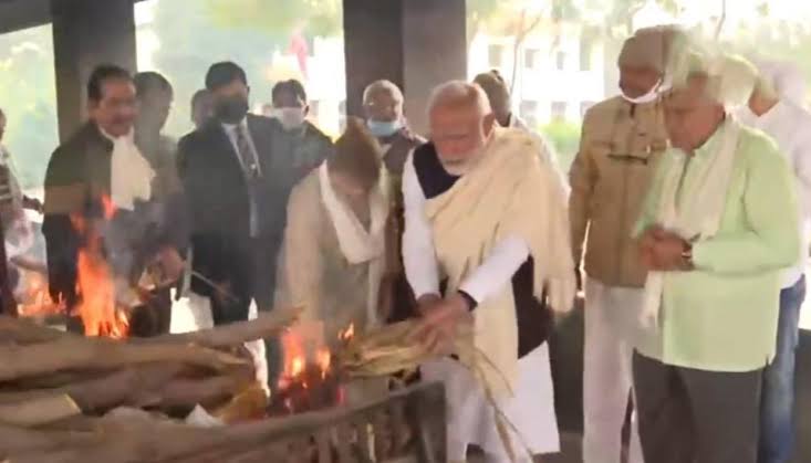 पीएम नरेंद्र मोदी की मां हीराबेन का आज निधन हो गया। पीएम मोदी अपनी मां को अंतिम विदाई देने गांधीनगर पहुंचे। पीएम मोदी ने अपने भाइयों के साथ मां हीराबेन को कंधा दिया और मुखाग्नि दी। इस मौके पर पीएम मोदी के परिवार के सदस्य मौजूद दिखे। बीजेपी कार्यकर्ताओं और नेताओं को इस मौके पर इकट्ठा होने के लिए मना किया गया था। इससे पहले आज सुबह हीराबेन का निधन हो गया था। वह अहमदाबाद के अस्पताल में भर्ती थीं।