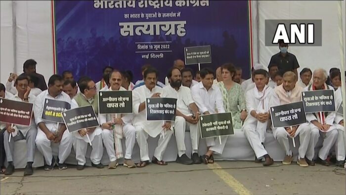 प्रियंका गांधी वाड्रा ने कहा कि देश की सेवा करने के लिए पूरे जीवन भर सेना में भर्ती होना चाहते हैं। ये जो भी हो रहा है गलत हो रहा है। इस योजना को वापस लेना चाहिए। कांग्रेस नेता राहुल गांधी ने पार्टी नेताओं और कार्यकर्ताओं से रविवार को उनका जन्मदिन नहीं मनाने की अपील की है। राहुल ने पार्टी नेताओं और कार्यकर्ताओं से एक संदेश में कहा कि देश के युवा परेशान हैं और सड़कों पर विरोध कर रहे हैं, कांग्रेस कार्यकर्ताओं को उनके साथ खड़ा होना चाहिए। एक ट्वीट में कांग्रेस नेता ने कहा कि बार-बार नौकरी की झूठी उम्मीद दे कर, प्रधानमंत्री ने देश के युवाओं को बेरोज़गारी के ‘अग्निपथ’ पर चलने के लिए मजबूर किया है।  8 सालों में, 16 करोड़ नौकरियां देनी थीं मगर युवाओं को मिला सिर्फ़ पकोड़े तलने का ज्ञान। देश की इस हालत के ज़िम्मेदार केवल प्रधानमंत्री हैं।