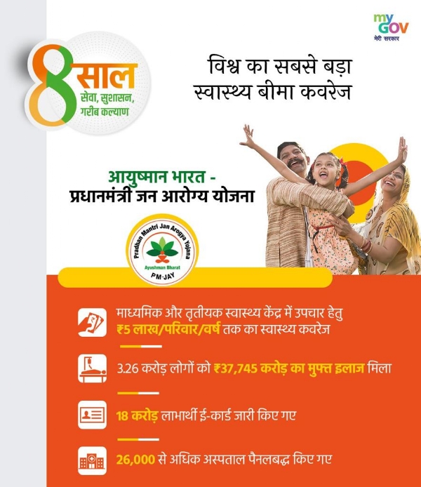 उन्होंने कहा कि विश्व का सबसे बड़ा स्वास्थ्य बीमा कवरेज करने वाली इस योजना के तहत अबतक 3.26 करोड़ लोगों को 37,745 करोड़ रुपये का मुफ्त इलाज दिया जा चुका है। 18 करोड़ लाभार्थियों को ई-कार्ड जारी किए जा चुके हैं । इसके तहत 26 हजार से अधिक अस्पतालों को पैनलबद्ध किया गया है।