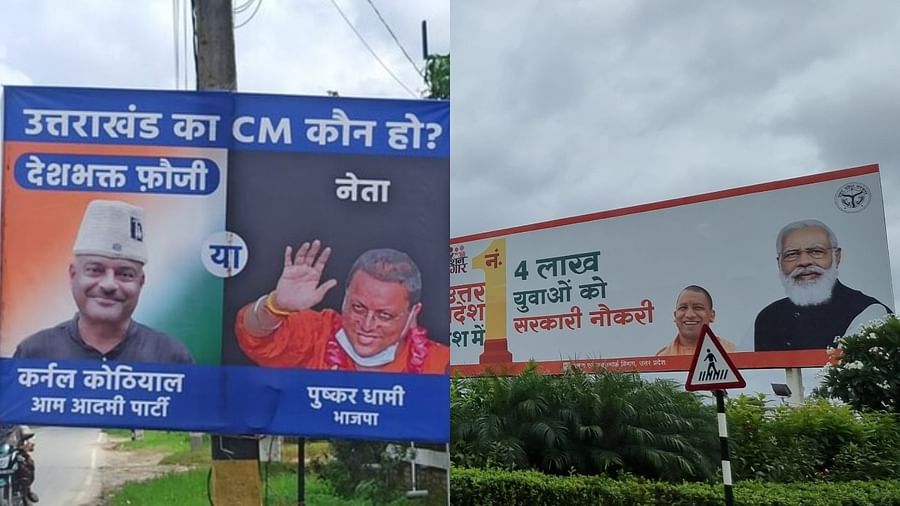 उत्तराखंड, उत्तर प्रदेश, पंजाब, गोवा और मणिपुर में जल्द ही विधानसभा चुनाव (Election 2022) होने जा रहे हैं. इन पांच राज्य में से 3 राज्य यूपी, पंजाब और उत्तराखंड की सरकारों में राजधानी दिल्ली में पोस्टर चस्पा करवा दिए हैं. इन पोस्टर्स में सरकार (UP Government) अपनी योजनाओं और सरकारों द्वारा किए गए कामों का बखान कर रही हैं. बता दें कि दिल्ली में कुल 70 विधानसभा हैं. यहां पर ज्यादातर लोग यूपी, बिहार, उत्तराखंड, हिमाचल प्रदेश, पंजाब, हरियाणा के रहने वाले हैं. ऐसे में जब भी इन सभी राज्यों में चुनाव होते हैं तो वहां की सरकारों और सियासी दलों की कोशिश रहती है कि किसी न किसी तरीके से इन प्रवासी दिल्लीवासियों का ध्यान अपनी तक खींचा जा सके.