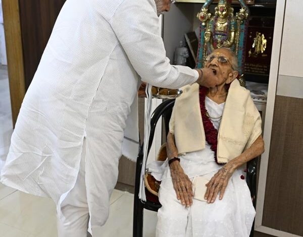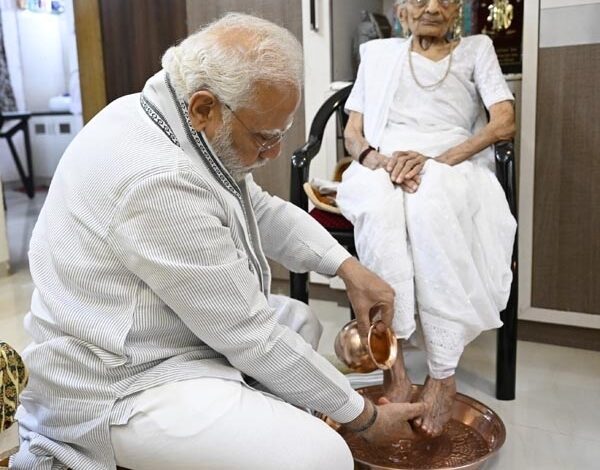 प्रधानमंत्री ने मां के साथ आधे घंटे से ज्यादा समय बिताया। वह मां के लिए खास तोहफा लेकर पहुंचे। उन्होंने मां हीराबा को लड्डू खिलाए और जन्मदिन की शुभकामनाएं दीं। इस मौके पर प्रधानमंत्री मोदी ने मां के पांव धोए और आशीर्वाद लिया। प्रधानमंत्री मोदी ने मां के आवास पर विशेष पूजा भी की। प्रधानमंत्री के रवाना होने के बाद समाज में प्रसाद का वितरण भी किया गया। मां का आशीर्वाद लेने के बाद प्रधानमंत्री मोदी हेलीकॉप्टर से पावागढ़ के लिए रवाना हो गए। पावागढ़ में वो विभिन्न विकास कार्यों का उद्घाटन करेंगे।