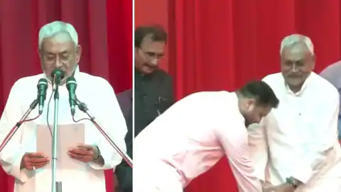 नीतीश कुमार ने 8वीं बार बिहार के मुख्यमंत्री के तौर पर शपथ ली है। पटना स्थित राजभवन में राज्यपाल फागू चौहान ने बुधवार दोपहर में उन्हें पद और गोपनीयता की शपथ दिलाई। उनके साथ राष्ट्रीय जनता दल (आरजेडी) नेता तेजस्वी यादव ने भी मंत्री पद की शपथ ग्रहण की है। वे दूसरी बार राज्य के डिप्टी सीएम बने हैं। महागठबंधन की नई सरकार में मंत्रिपरिषद का गठन बाद में किया जाएगा। शपथ लेने के बाद तेजस्वी यादव ने ‘चाचा’ नीतीश का पैर छूकर आशीर्वाद लिया।