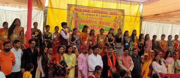 लखनऊ। रविवार को मानव एकता एसोसिएशन और महन्त अवैद्यनाथ चौरिटेबिल ट्रस्ट की ओर से लखनऊ के सरोजनीनगर में सर्वजातीय सामूहिक विवाह समारोह हुआ, जिसमें 51 कन्याओं ने अपने जीवन साथी को चुना। विवाह के साथ ही नव विवाहित जोड़ों ने कन्या भ्रूण हत्या न करने और नशामुक्ति का संकल्प लिया।