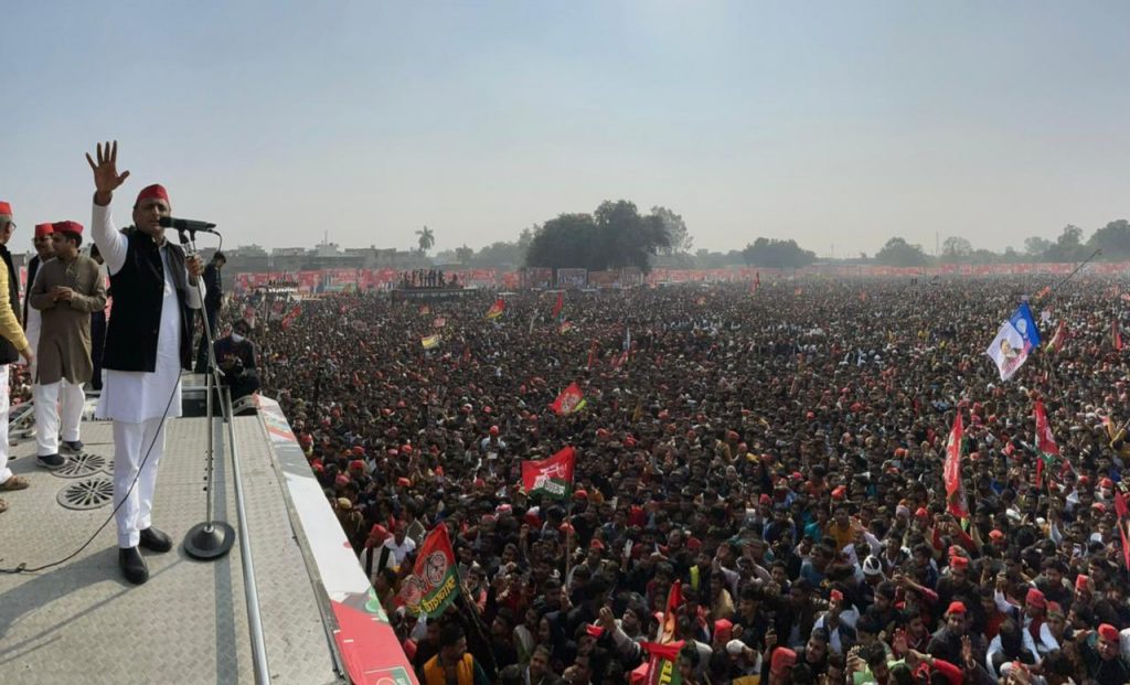 अखिलेश यादव ने कहा कि भाजपा की सरकार एक्सप्रेसवे के किनारे मंडी बनने का कार्य पूरा नहीं कर सकी। जितनी मंडी सपा सरकार ने बनाई उतनी ही आज हैं। जो सड़कें नेताजी (मुलायम सिंह यादव) ने दीं, उन सड़कों को चैड़ा नहीं किया गया। उन्होंने कहा कि भाजपा की रैली सरकारी रैली होती है। सपा की रैली जनता की रैली है। जनता से भाजपा को हटाने का संकल्प लिया है। ये ऐतिहासिक रैली बता रही है कि भाजपा की ऐतिहासिक हार होगी। लखीमपुर कांड को लेकर अखिलेश यादव ने योगी सरकार से सवाल किया कि सरकार बताए लखीमपुर में बुलडोजर कब चलेगा। सबसे अधिक माफिया भाजपा में हैं। पहले मुख्यमंत्री हैं, जिन्होंने अपने मुकदमे वापस लिए।