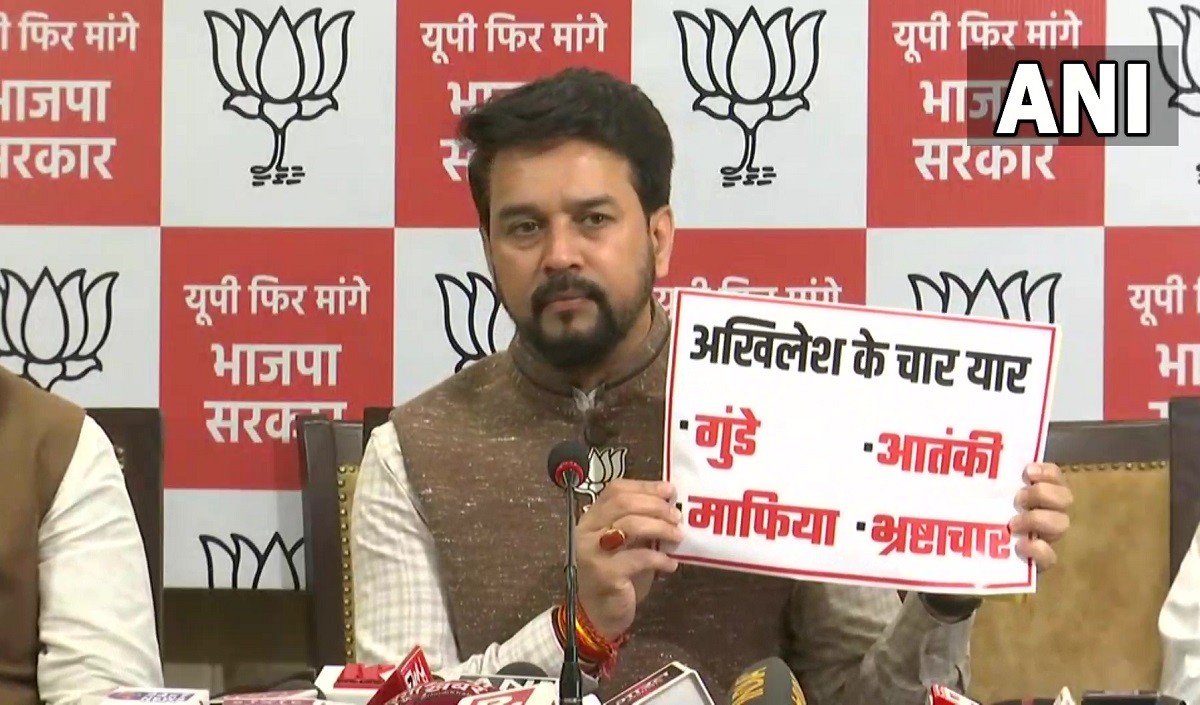 Akhilesh has four 'yaar' (friends) in 'Gunda' (goons), terrorists, corrupt people, and mafia: MoS Anurag Thakur in a press conference on UP elections#UttarPradeshElections pic.twitter.com/F56Hz4VhK2