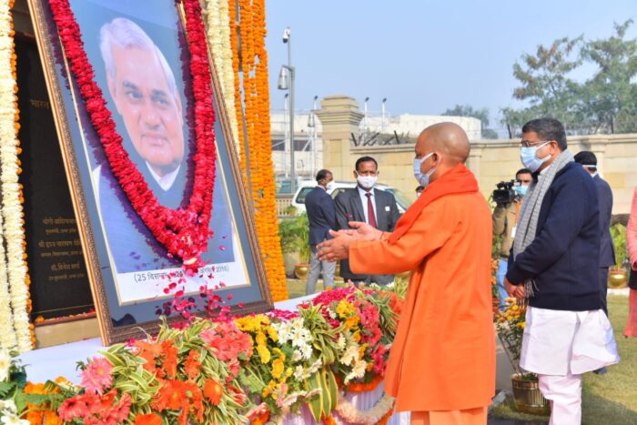 मुख्यमंत्री योगी ने अटल की प्रतिमा पर माल्यार्पण कर नमन किया