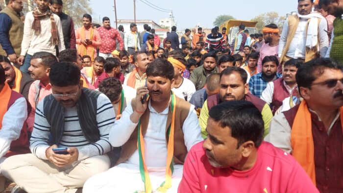 मौके पर पहुंचे जिले के आला अधिकारियों ने उन्हें समझाने बुझाने का प्रयास किया और उनके पक्ष की तरफ से भी मुकदमा पंजीकृत किया। उसके बाद भाजपा प्रत्याशी आरोपियों की गिरफ्तारी करने की मांग करते हुए कोतवाली गेट पर जमे रहे। यह सिलसिला दिन में 11 बजे से शुरू होकर लगातार चलता रहा। बीच-बीच में जय श्री राम, वंदे मातरम, अजय सिंह तुम संघर्ष करो हम तुम्हारे साथ हैं के नारे लगाए जाते रहे। वहीं पुलिस मूकदर्शक बनी रही। मौके पर सीओ गोंडा, अपर जिलाधिकारी, उप जिलाधिकारी करनैलगंज सहित कई थानों के थानाध्यक्ष एवं पुलिस फोर्स मौजूद रही और धरना प्रदर्शन चलता रहा। समाचार लिखे जाने तक धरना प्रदर्शन चल रहा था और भाजपा के समर्थकों की संख्या में लगातार इजाफा होता रहा।