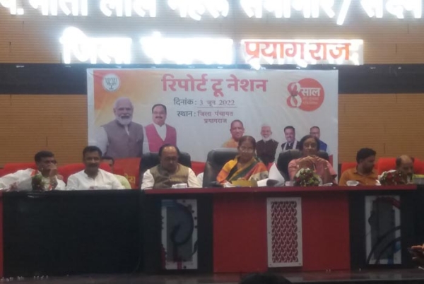प्रयागराज। केन्द्र की मोदी सरकार के आठ साल पूर्ण होने के उपलक्ष्य में शुक्रवार को जिला पंचायत सभागार में वक्ताओं ने कहा कि भारत आत्मनिर्भरता की राह पर तेजी से बढ़ा है। जनता में राष्ट्रवाद की भावना बढ़ी है। मोदी सरकार के आठ वर्ष का कार्यकाल बेमिसाल उपलब्धियों से भरा रहा है। वहीं पूर्व प्रदेश प्रवक्ता सिद्धार्थ नाथ सिंह इसे परिवर्तन युग बताते हुए कहा कि जो 70 वर्षों में नहीं हुआ वह अब हो रहा है, जिसकी लोग कल्पना नहीं करते थे।