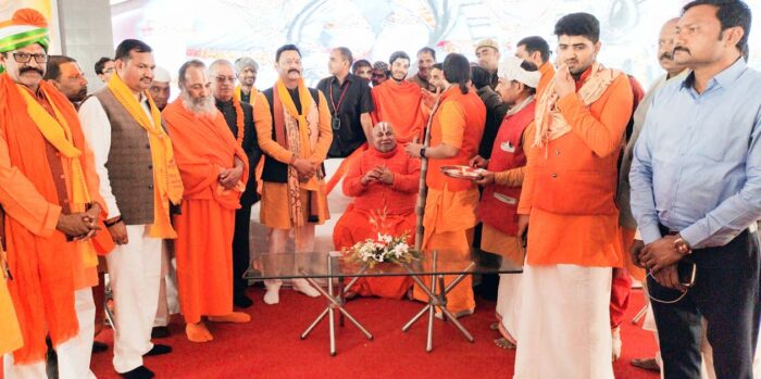 वहीं जगदगुरू के उत्तराधिकारी आचार्य रामचंद्र दास महाराज ने बताया कि विश्व के अंदर सनातन धर्म की बढ़ती लोकप्रियता से घबरा कर हिंदू विरोधी शक्तियां हमें जाति व सम्प्रदाय में विभाजित करके दिग्भ्रमित करने का प्रयास कर रही हैं। इस कुचक्र से बचकर हम सबको एकजुट होना पडे़गा। उन्होंने कहा कि अबोध बालक-बालिकाओं को पाश्चात्य शिक्षा के नाम पर सनातन संस्कृति व संस्कार से दूर किया जा रहा है। बेटियों को लव जिहाद में फंसाकर धर्मांतरण कर शोषण किया जा रहा है। पवित्र मठ-मंदिरों का अधिग्रहण करके उनकी संपत्तियों पर कब्जे हो रहे हैं। हजारों गो-माता प्रतिदिन काटी जा रही हैं, जो रुकना चाहिए।