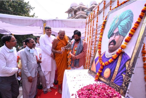 छत्रपति शाहूजी महाराज की प्रतिमा पर पर कौशल किशोर ने माल्यार्पण किया