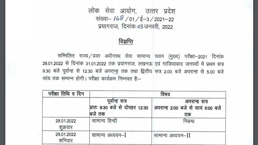 यूपीपीएससी ने एग्जाम शेड्यूल के लिए जारी किए गए नोटिस में कहा है कि अपरिहार्य परिस्थिति में उक्त परीक्षा कार्यक्रम में परिवर्तन किए जा सकते हैं.