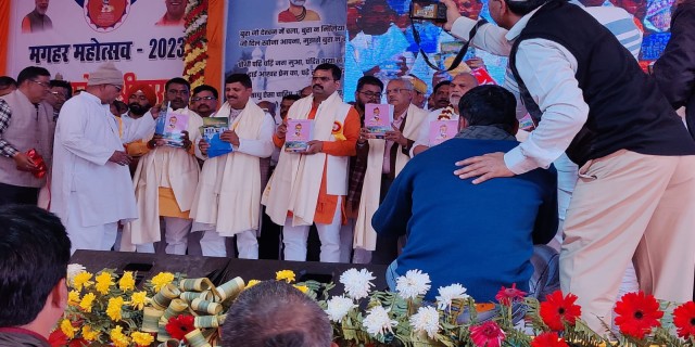 संत कबीर नगर 07 फरवरी 2023(सू0वि0)। जनपद में महान सूफी संत, कवि एवं समाज सुधारक संत कबीर दास जी की परिनिर्वाण स्थली मगहर में आयोजित 03 दिवसीय मगहर महोत्सव का शुभारम्भ मा0 विधायक सदर अंकुर राज तिवारी, मा0 विधायक मेंहदावल अनिल कुमार त्रिपाठी, मा0 विधायक धनघटा गणेश चौहान व मण्डलायुक्त, बस्ती मण्डल, बस्ती योगेश्वर राम मिश्र, जिलाधिकारी प्रेम रंजन सिंह ने संत कबीर के समाधि एवं मजार पर पूजा अर्चना करने के उपरान्त फीता काट कर, दीप प्रज्जवलित करते हुए किया। मा0 अतिथिगणों द्वारा आपसी भाईचार एवं प्रेम का प्रतीक कबूतर एवं गुब्बारा छोड़ा गया। मगहर महोत्सव के उद्घाटन के बाद अधिकारियों द्वारा मा0 अतिथिगणों का बैच लगाकर स्वागत किया गया। शुभारम्भ अवसर पर मा0 विधायक गण, मा0 आयुक्त, जिलाधिकारी प्रेम रंजन सिंह द्वारा संत कबीर सौहार्द एवं सांस्कृतिक मेला पर आधारित मगहर महोत्सव स्मारिक-2023 का विमोचन किया गया। विद्यालय की छात्र/छात्राओं द्वारा सरस्वती बन्दना के साथ मगहर महोत्सव का विधिवत शुभारम्भ हुआ।