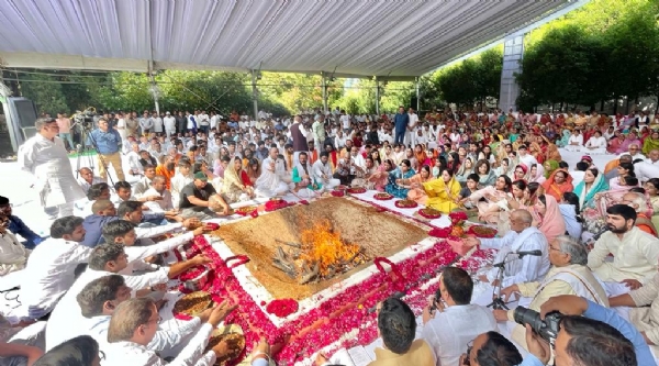 सपा संस्थापक मुलायम सिंह यादव की आत्मा की शांति के लिए उनके निधन के ग्यारहवें दिन सैफई में आज शांति हवन का आयोजन किया गया है। शांति हवन को मथुरा, अयोध्या और हरिद्वार से आए विद्वान पंडितों के द्वारा मंत्रोच्चारण की शुरुआत कर की गई। हवन में अखिलेश यादव पत्नी डिम्पल यादव, चाचा शिवपाल यादव, धर्मेन्द्र यादव समेत परिवार की सभी महिलाएं और परिवारीजन शामिल होकर आहुति दे रहे हैं।