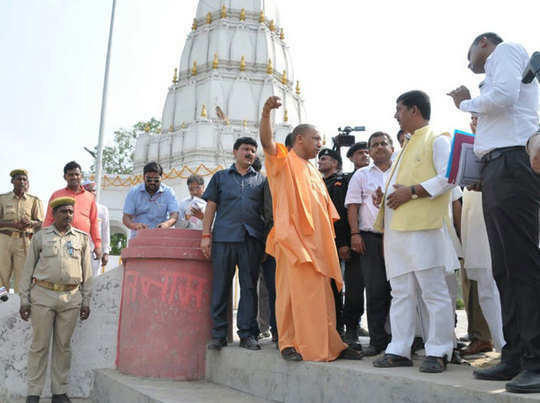 संतकबीरनगर। उत्तर प्रदेश के मुख्यमंत्री योगी आदित्यनाथ द्वारा राष्ट्रपति के 5 जून के कार्यक्रम के पूर्व कबीर स्थली कबीर चौरा धाम मगहर (सन्तकबीरनगर) का रविवार को हेलीकॉप्टर से पहुँच कर निरीक्षण किया गया । इस दौरान सुरक्षा व्यवस्था के कड़े प्रबंध किये गए थे।