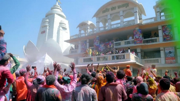 • हाइड्रोलिक पिचकारी से बरसा टेसू का रंग, अबीर-गुलाल में सराबोर भक्तों ने गाये फाग गीत