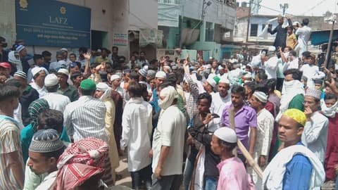 #WATCH Uttar Pradesh: Protest erupted in Pyaragraj over inflammatory statements of suspended BJP leader Nupur Sharma and expelled BJP leader Naveen Kumar Jindal pic.twitter.com/aipfBdvica