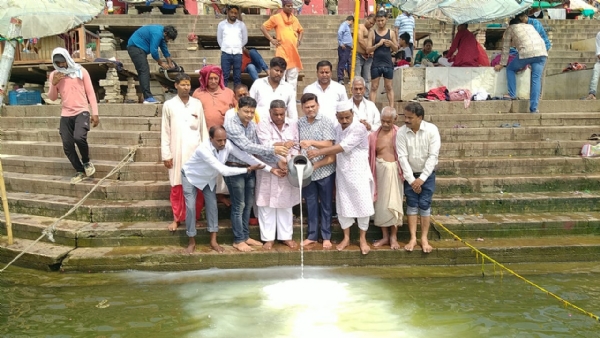 उत्तर प्रदेश भाईचारा कमेटी ने पंचमेवा से किया मां गंगा का दुग्धाभिषेक