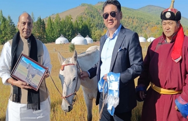 मंगोलिया ने भारत को एक रणनीतिक भागीदार और ‘आध्यात्मिक पड़ोसी’ घोषित किया है। यात्रा पूरी होने पर राजनाथ सिंह को मंगोलिया के राष्ट्रपति यू. खुरेलसुख की ओर से विशेष उपहार के तौर पर एक घोड़ा दिया, जिसका नाम उन्होंने ‘तेजस’ दिया है। इस बारे में रक्षामंत्री ने ट्वीट किया, मंगोलिया में हमारे खास दोस्तों की ओर से एक खास तोहफा। मैंने इस शानदार सुंदरता का नाम ‘तेजस’ रखा है। धन्यवाद, राष्ट्रपति खुरेलसुख। धन्यवाद मंगोलिया।
