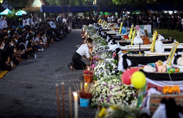 बैंकॉक। थाईलैंड में ताबड़तोड़ गोलियां बरसा कर चारों तरफ लाशों का ढेर लगाने वाला सीरियल किलर गिरफ्तार कर लिया गया है। क्रूरता की सारी हदें पार करने वाले इस हत्यारे ने महज तीन घंटे में 22 बच्चों समेत 36 लोगों को मार डाला था। जानकारी के मुताबिक 06 अक्टूबर को थाईलैंड में एक व्यक्ति ने लगातार तीन घंटे ताबड़तोड़ गोलियां बरसा कर हत्याएं कीं। पन्या नामक इस व्यक्ति ने तीन घंटे में 22 मासूम बच्चों समेत 36 लोगों को मौत के घाट उतार दिया था। पन्या ने जिन बच्चों की हत्या की, उनमें से अधिकांश की उम्र दो से पांच वर्ष थी।